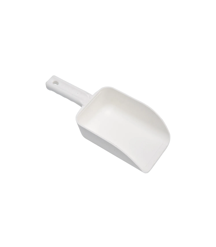 The small scoop is ideal for moving material. Its solid construction makes it extremely durable . It has no seams or cracks which help prevent bacterial growth.