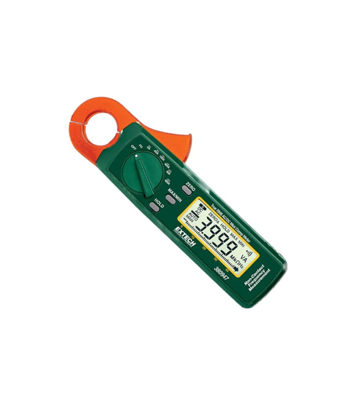 The compact Extech 380947 is a 400 Amp True RMS mini clamp meter. This meter has a small diameter jaw designed to reach in small areas while providing 1mA resolution and very low-current sensitivity. This mini clamp meter is useful for current and frequency related troubleshooting in plant maintenance, electrical, HVAC, and telecom work, as well as home electrical, fleet maintenance, marine, and motorcycle repairs. Comes with battery and manual.