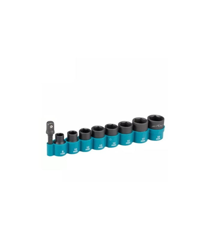 - – It allows impact driver to fasten or loosen bolt and nut – Ball type socket adapter allows easy attaching or detaching sockets – Sizes: 8, 10, 12, 13, 14, 15, 17, 18mm – Socket adapter 50mm