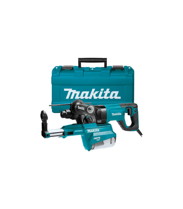 Rotary Hammer Drill Machine Makita HR2661 is a Combination Hammer, Powered by a Powerful 800W Motor, that provides 0 ~ 1,100 rpm. It is equipped with an efficient HEPA filtration system, with a transparent dust container with an accurate level indicator of collected material. This Rotary Hammer Drill Machine combines high-performance features in a compact size. It is ideal for a range of applications including overhead drilling into concrete, wood, and metal, removing tile, and more. In addition, Anti-Vibration Technology is an internal counterbalance system for significantly less vibration. Double insulated to protect the user, the Variable speed feature allows the user to control the speed. The torque limiter reduces gear damage, and the reversing helps quickly remove screws and other fasteners. Dust collecting system helps provide a cleaner work environment and ensures reliability and long life.