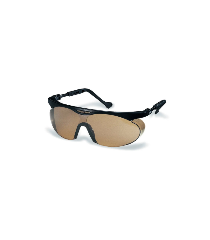 - Skyper black safety spectacles with brown sunglare lens and uvex supravision sapphire coating